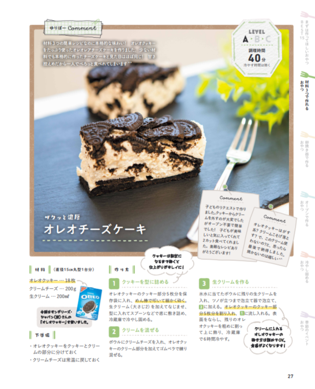 さらに、普段は「お菓子作りはちょっと苦手」と話すゆりぼーさん自身が、代表して試作を重ねた一冊。初心者でも思わず「これならで作れそう!」と感じられるレシピがそろっています。お菓子作りに自信がない方はもちろん、お子さんと一緒に楽しみたいご家庭にもぴったりの一冊です。