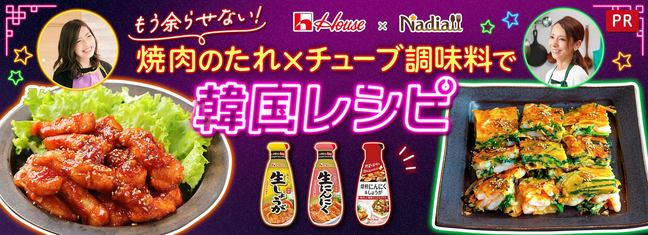 Nadia株式会社(東京都港区/代表取締役社長 葛城嘉紀 以下「Nadia」)とハウス食品株式会社(東京都千代田区/代表取締役社長 川崎 浩太郎 以下「ハウス食品株式会社」)がタイアップし、特設企画ページ【もう余らせない!焼肉のたれ×チューブ調味料で韓国レシピ】を公開いたしました。