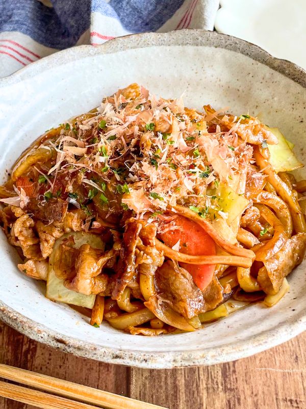家族の晩ご飯に!回鍋肉焼きうどん by motoさん