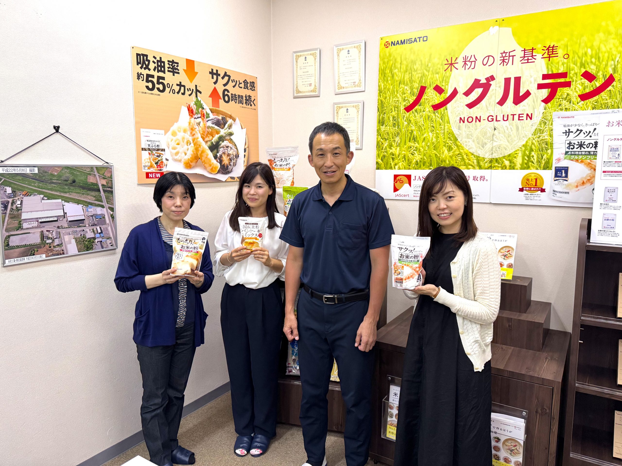 この度、本企画の一環として、国内米粉生産量においてトップクラスの実績を持つ波里の工場に、レシピ紹介で活躍中のNadia Artist3名を招待し、工場訪問を実施いたしました。