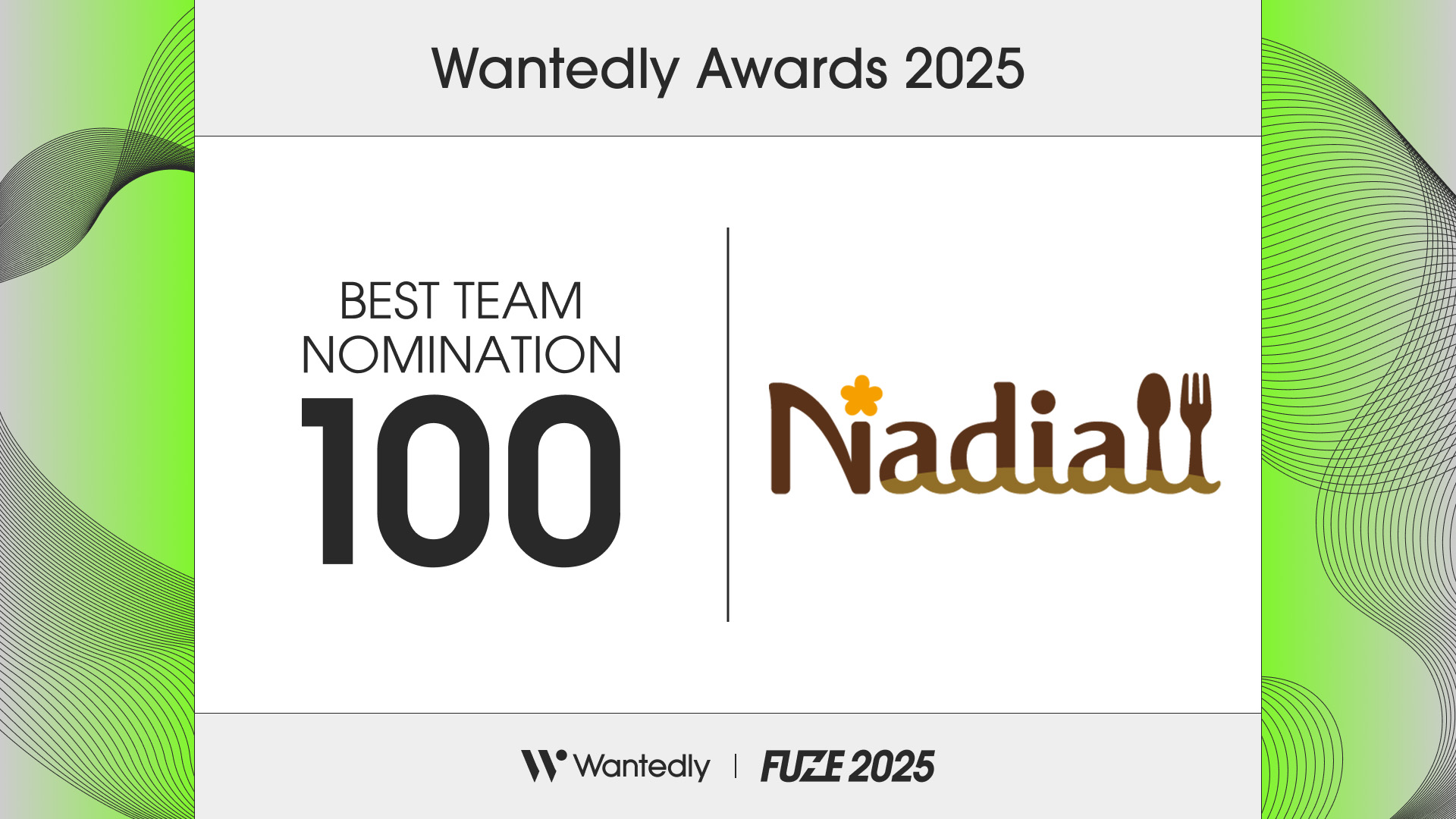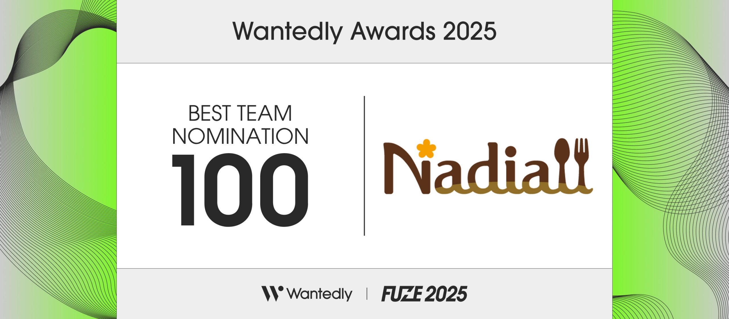 Nadia株式会社(東京都港区/代表取締役社長 葛城嘉紀)にて運営している料理メディア「Nadia(ナディア)」(以下「Nadia」)(URL:https://oceans-nadia.com/)は、ウォンテッドリー株式会社の『Wantedly Awards 2025』において、40,000社以上のWantedly登録企業の中から「BEST TEAM NOMINATION 100(TEAM OF THE YEAR BEST 100)」にノミネートされたことをお知らせします。