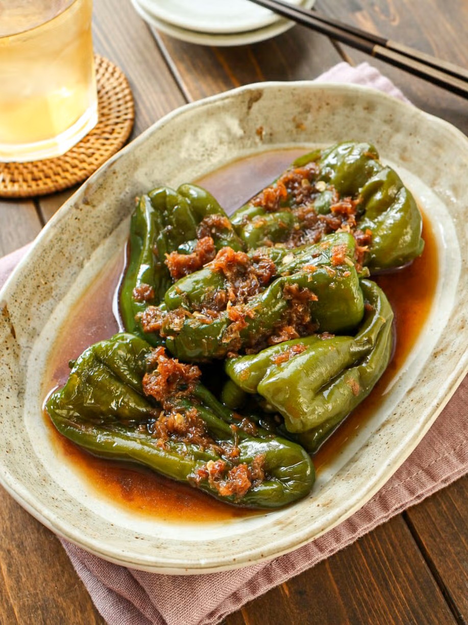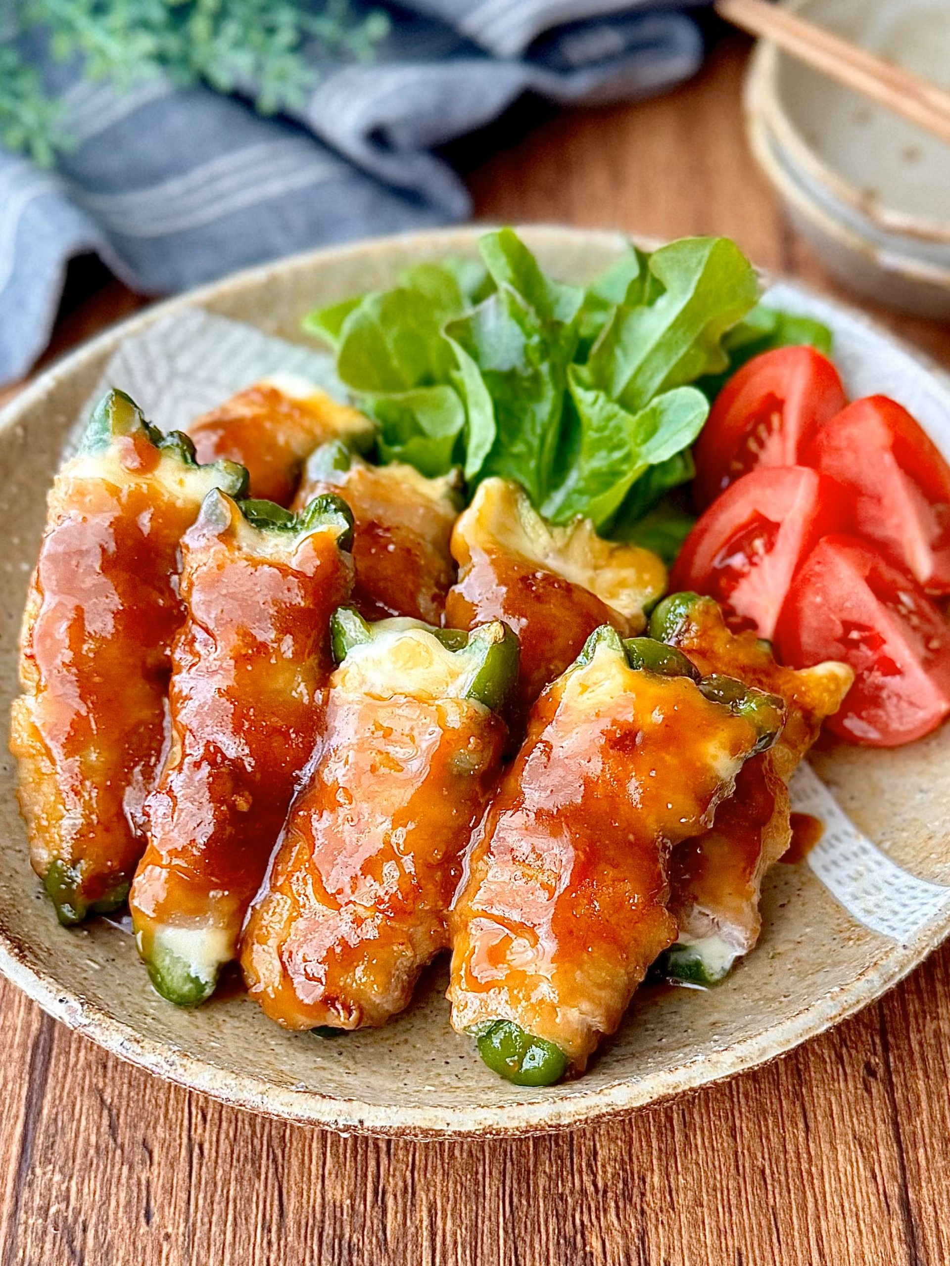 ピーマンをへたや種まで丸ごと活用し、手間を省きつつ食材を余さず使う工夫が評価に繋がりました。ピーマンをチーズと豚肉で巻くことで種も気にせず美味しく食べられ、甘めのたれでご飯もすすみます!