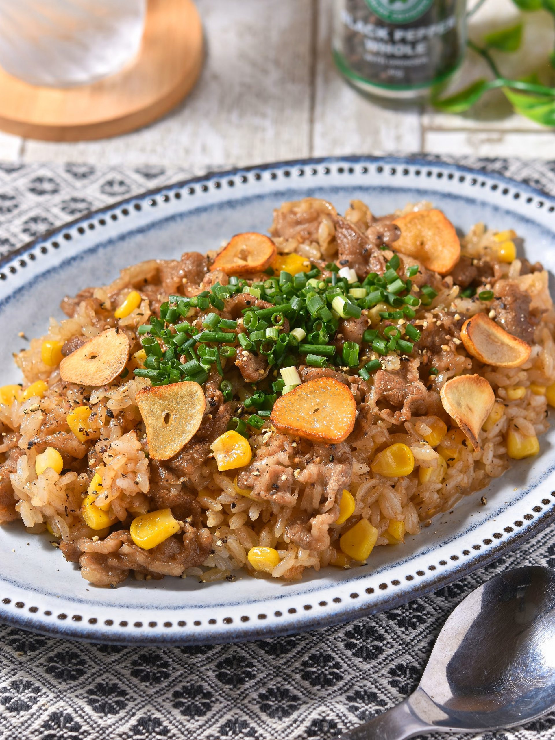 ビーフガーリックライス│10分で作るがっつりスタミナごはん byすずめ(笠原由紀恵)さん