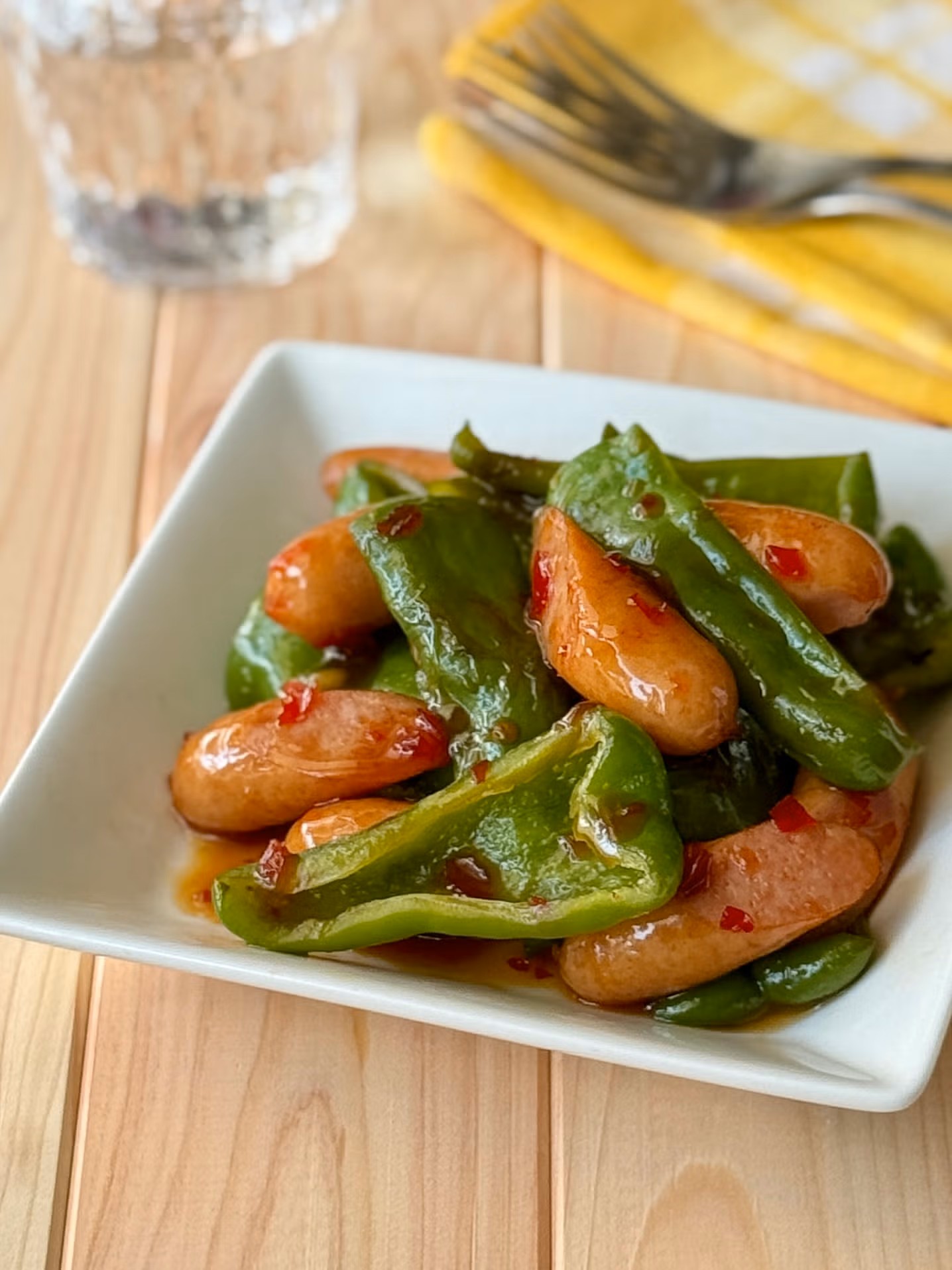ピーマンとウインナーのスイートチリ炒め♪食材2つで簡単おかず by yukaさん