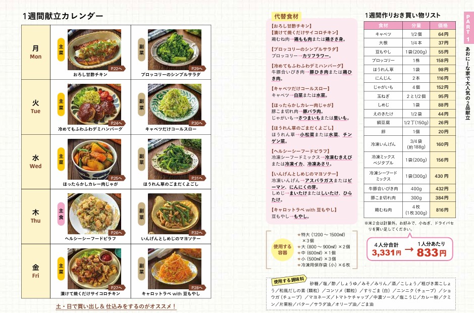 『1週間3000円台でできます! 毎日2品の作りおき献立レシピ』