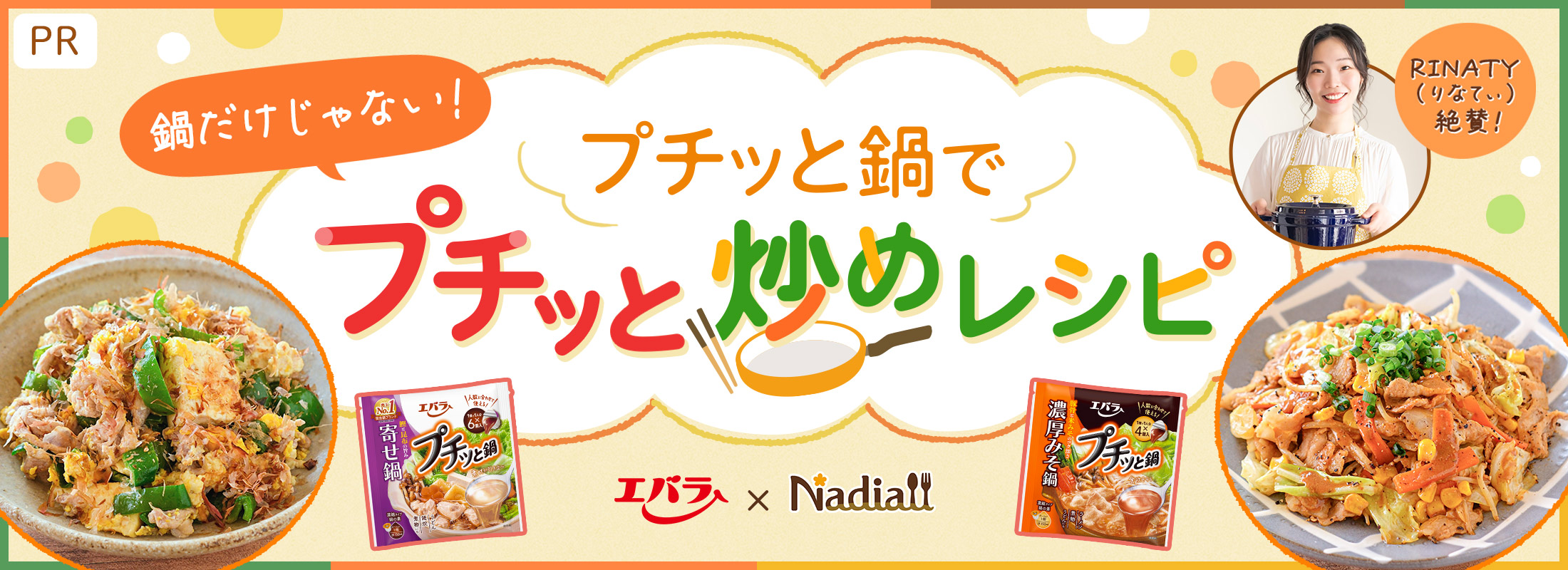 Nadia株式会社(東京都港区/代表取締役社長 葛城 嘉紀 以下「Nadia」)とエバラ食品工業株式会社(神奈川県横浜市/代表取締役社長 森村 剛士 以下「エバラ食品」)がタイアップし、「プチッと鍋」の認知・消費拡大を目的に、特別企画ページ【プチッと鍋でプチッと炒めレシピ】を公開いたします。
