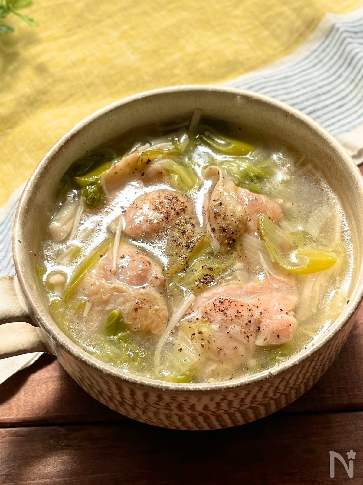 ご飯がモリモリ食べられる、おかずスープです。鶏肉にしっかり焼き目をつけて肉汁を閉じ込めることで、ぐっと美味しくなります。ジューシーな鶏肉のうま味と野菜の甘みがマッチして、おかわり必至の美味しさです。