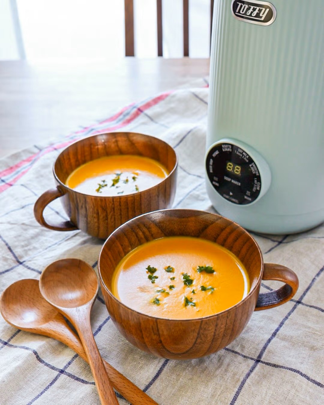 このイベントでは、Nadiaで人気の料理家、まいのごはん。さんを講師に迎え、「Toffy オートスープブレンダー〈セラミックコートタイプ〉」のために考案いただいたオリジナルレシピ3品を実演しました。さらに、ゲストとして参加した15名のNadia Artistたちにも本製品を1人1台使用して調理体験を行っていただき、材料を入れてスイッチを押すだけの圧倒的な手軽さと、本格的な美味しさを実際に体感していただきました。
