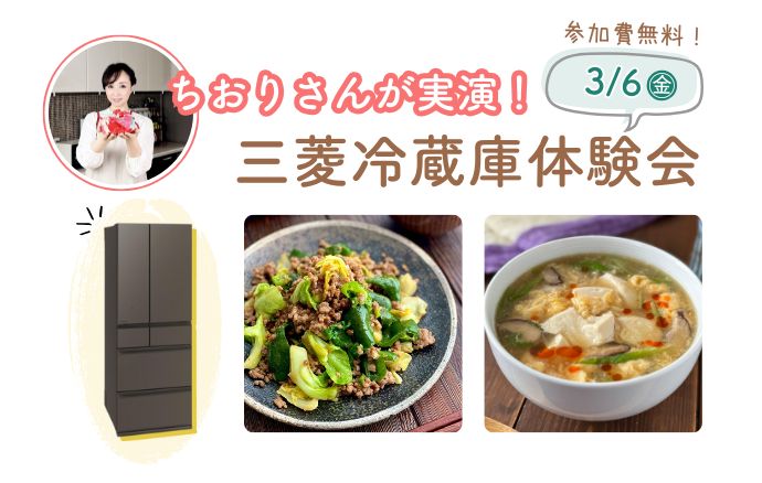 【ニュースリリース】《3月6日開催》人気Nadia Artistちおりさんが実演!三菱冷蔵庫体験会に無料でご招待♪
