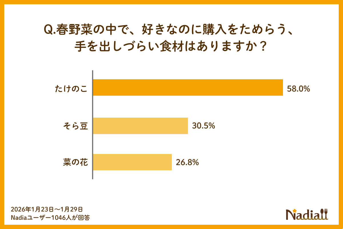 【春野菜調査】「好きだけれどハードルが高い」春野菜1位は「たけのこ」。春に食べたい圧倒的人気メニューは?この春気になるのは「デトックス・腸活」